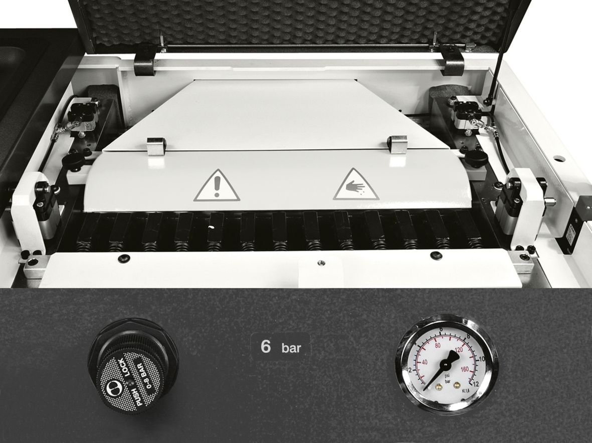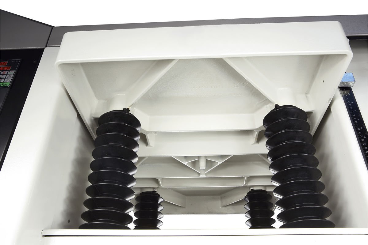 Os 4 fusos de grande diâmetro, combinados com 2 guias lineares laterais, asseguram a estabilidade da mesa, eliminando a necessidade de travamento na posição. As proteções integradas garantem alta precisão e confiabilidade ao longo do tempo.