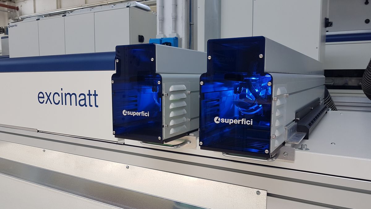 Superfici excimatt dá um efeito de toque surpreendentemente suave e atinge um nível de brilho extremamente baixo; efeitos que são muito apreciados pelas últimas tendências de design. O sistema Superfici Excimatt, aplica a tecnologia excimer nos mais variados produtos acabados e materiais.