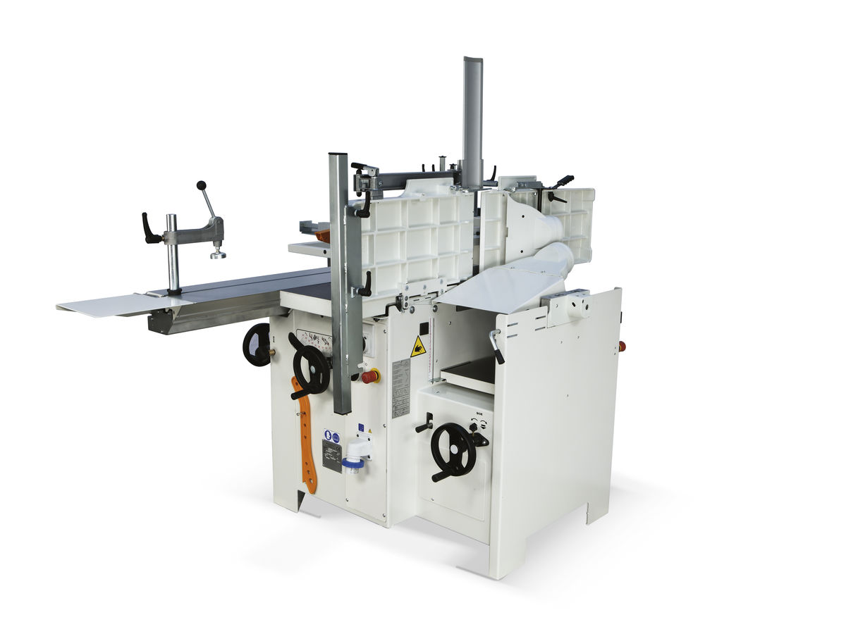 A unidade de tupia está equipada com um veio de comprimento útil de 100 mm. Pode ser utilizada uma ferramenta com diâmetro máximo de 180 mm, totalmente retráctil sob a mesa de trabalho. Para máxima segurança e maior flexibilidade, é fornecida de série uma proteção de tupia para operações de moldagem.