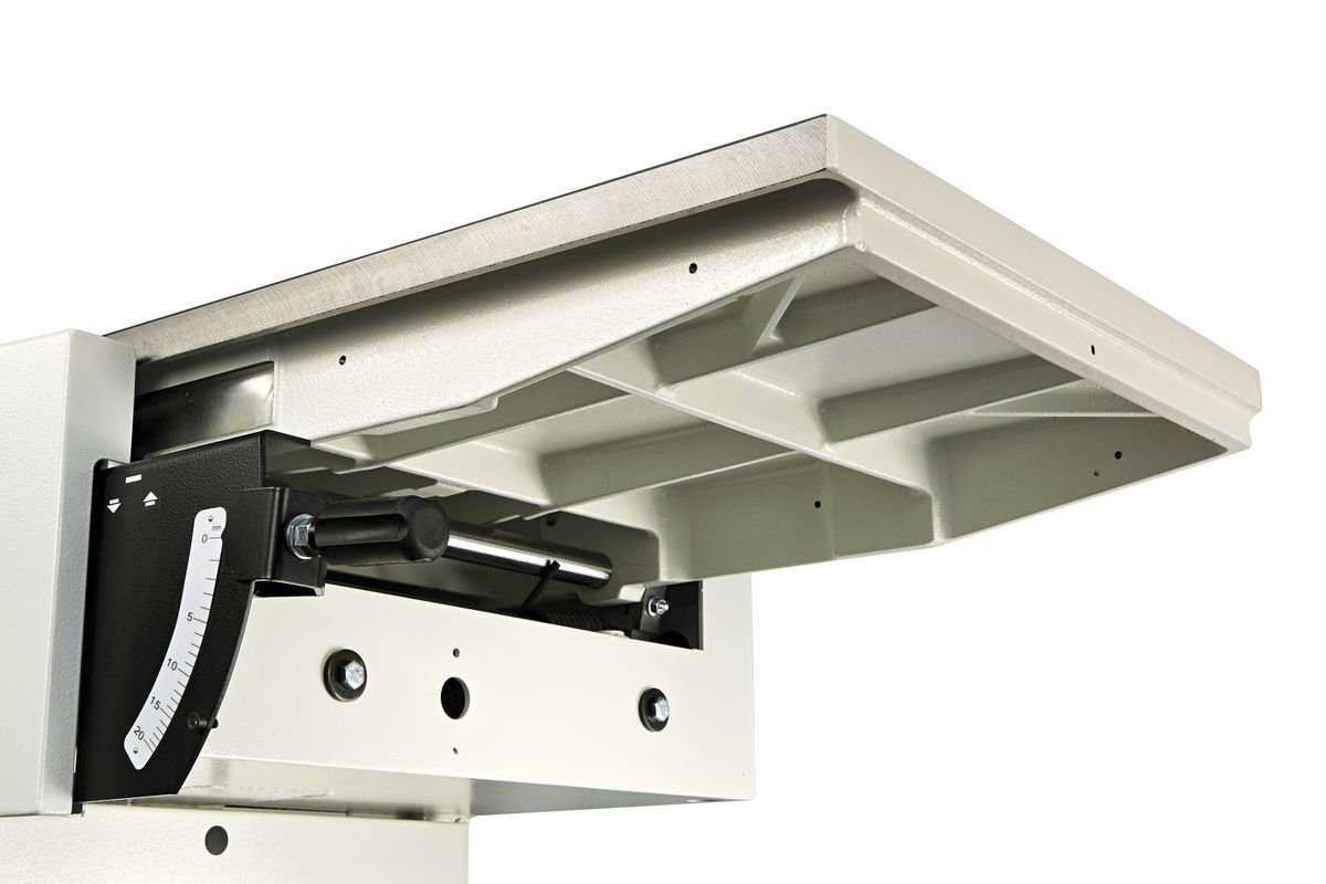 Graças às amplas mesas de trabalho em ferro fundido nervurado, é garantida a máxima rigidez e ausência de vibrações durante o processamento.