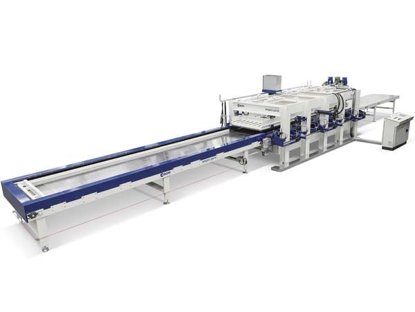 Prensa de alta produtividade para produção de painéis lamelares, que são utilizados na construção de telhados, telhados cantilever, pontes e elementos estruturais em geral. Dependendo dos requisitos específicos do fabricante, o sergiani GSL-KL pode ser configurado com diferentes composições e sistemas automáticos de carga/descarga de painéis.